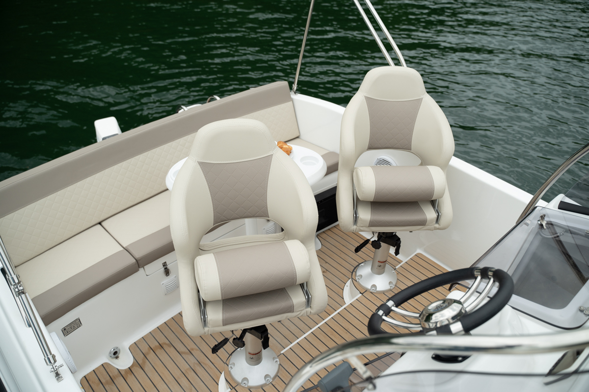 Marion 565 Cabin to nowoczesna łódź elektryczna, którą możesz prowadzić bez uprawnień, a jednocześnie cieszyć się wszystkim, co najlepsze: ciszą silnika, komfortem kabiny i przestronnym dziobem idealnym do opalania się.
