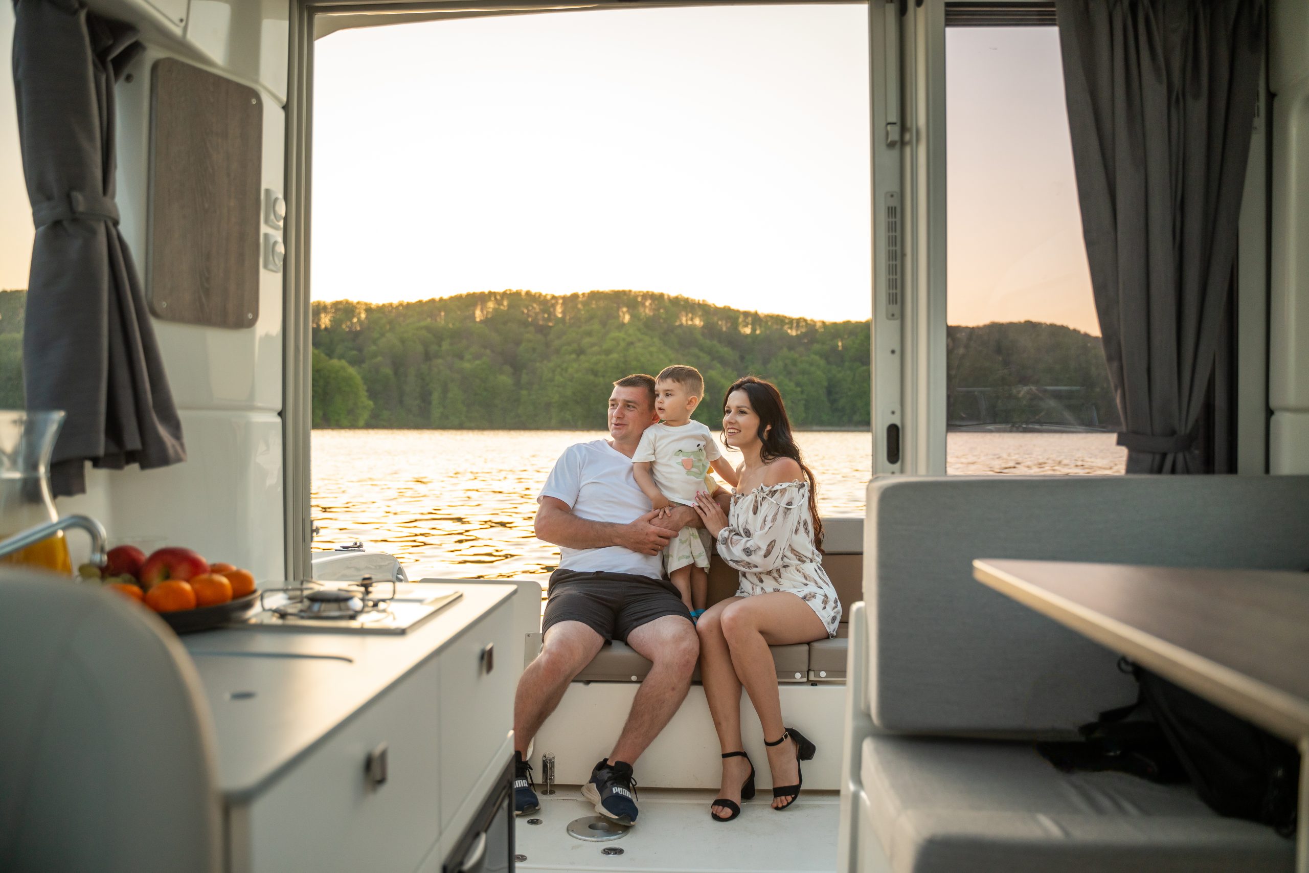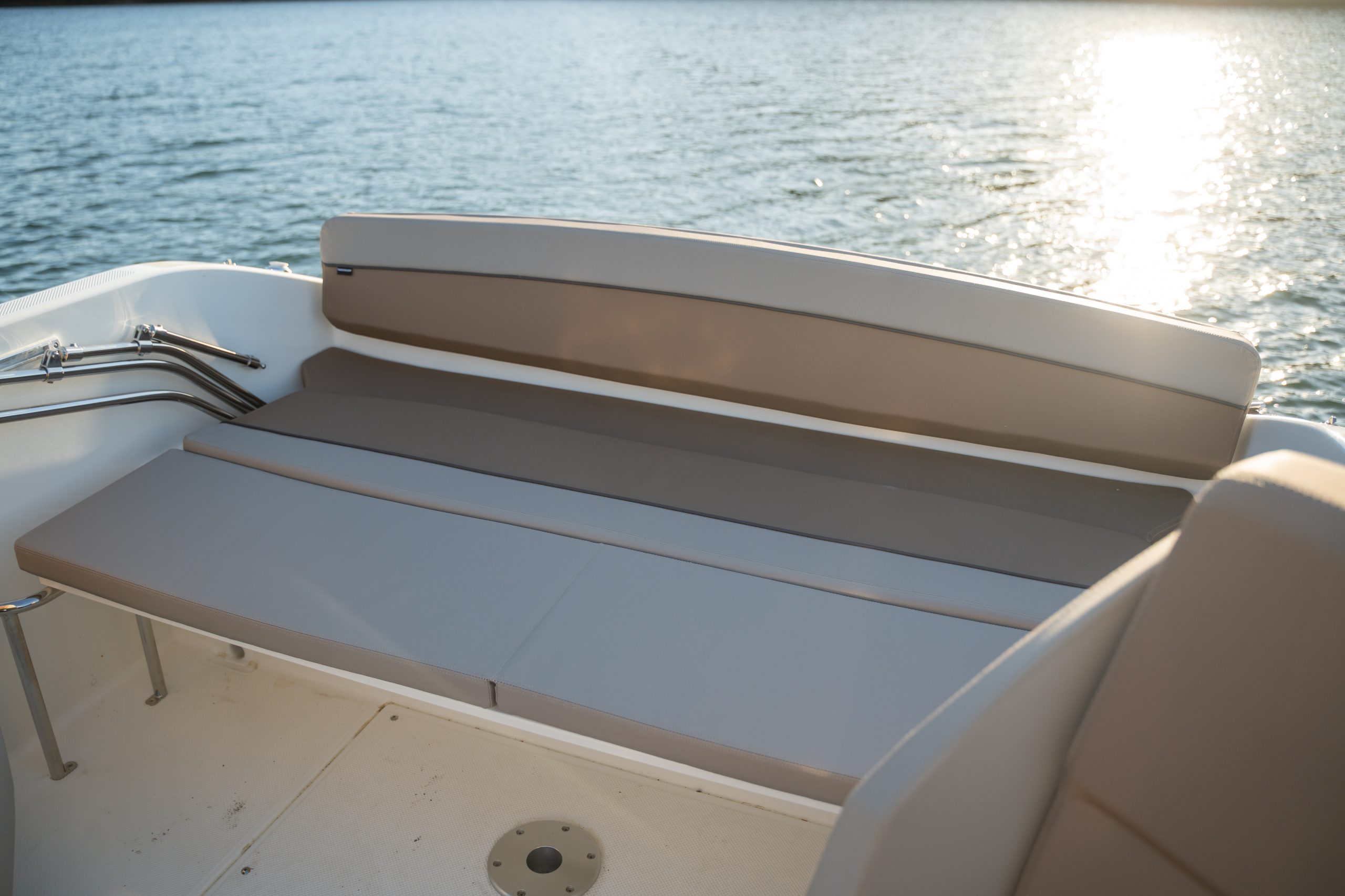 Większa łódź często oznacza większe bezpieczeństwo. Duża platforma kąpielowa z wbudowanym stopniem przy silniku umożliwia łatwe wejście do wody i powrót na pokład. Jeśli masz na pokładzie dzieci pełne energii, nie musisz się martwić – wysoki reling na dziobie i głęboki kokpit zapewniają im bezpieczne poruszanie się podczas rodzinnych rejsów.