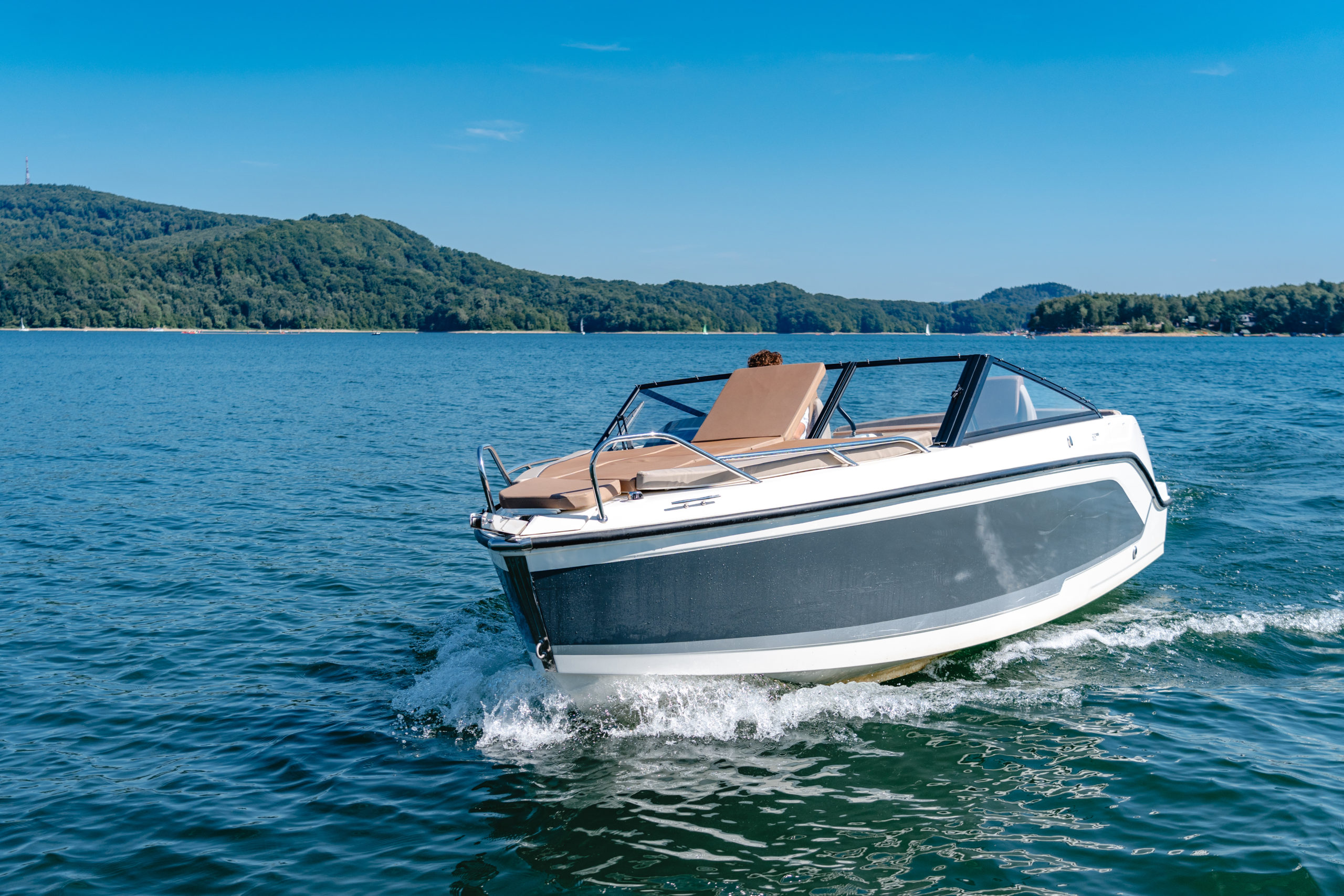 Zarezerwuj przygodę na naszych elektrycznych jachtach Quicksilver 755, 705, 605, Parker, Marion oraz Joy – bez potrzeby posiadania patentu sternika motorowodnego! Jeśli masz patent żeglarski, czekają na Ciebie także nasze jachty żaglowe. Dołącz do nas i odkryj wolność na wodzie!